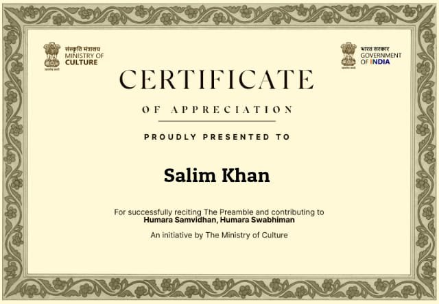 | 6 | Humara Swabhiman | 2025 | Humara Swabhiman to Founder Dr Salim Khan by Minis... |